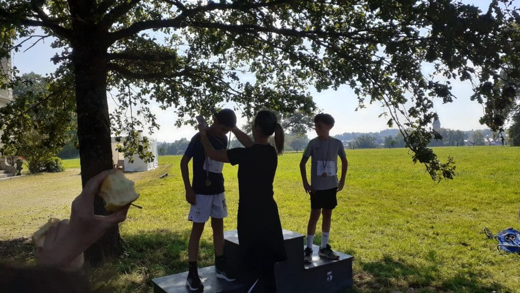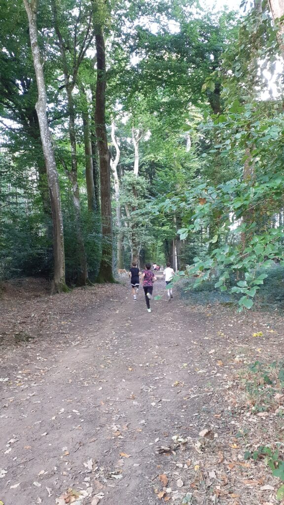 Le matin, CM1, CM2 et 6èmes ont couru dans le petit bois du château de la Touche de Nozay dans une ambiance brumeuse mais ensoleillée – des élèves ont même vu des biches non loin (!)