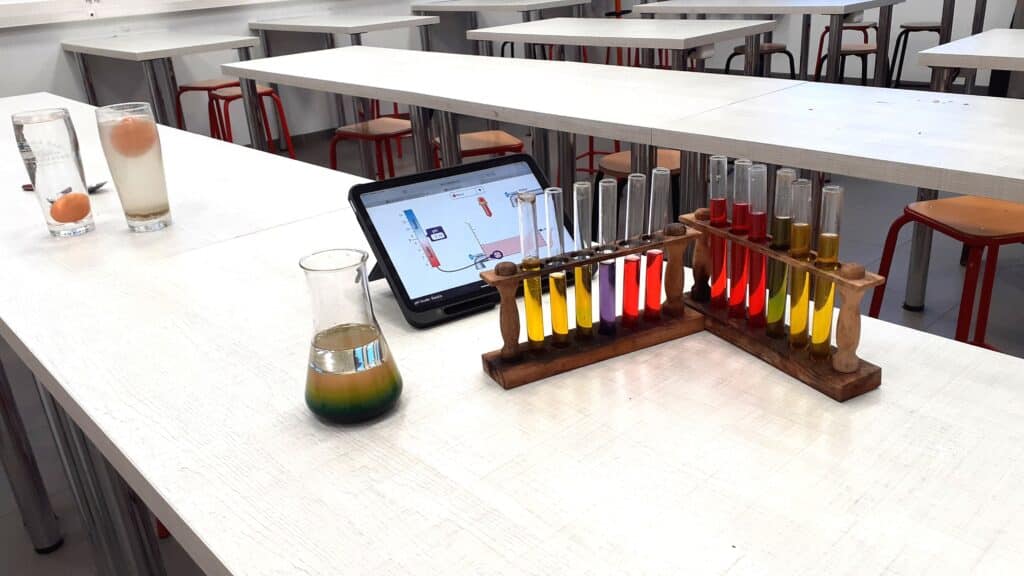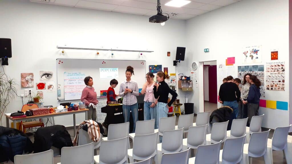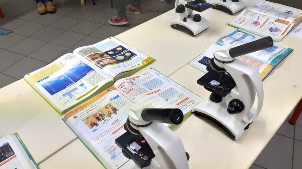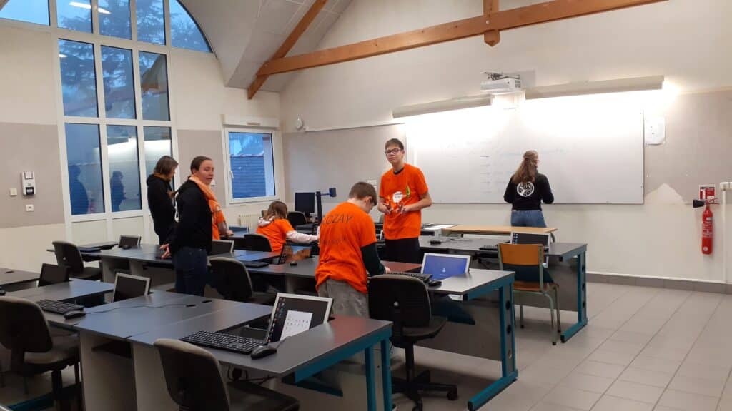 Guidées par des élèves au t-shirt orange incontournable et munies de notre nouvelle plaquette, les familles ont pu aller à la rencontre des professeurs, de la vie scolaire et de l’équipe de restauration afin de pouvoir poser des questions et admirer des productions d’élèves, voire des élèves en pleine démonstration : chant dans la salle d’Éducation Musicale, expériences scientifiques dans le labo de Physique-Chimie ou encore, utilisation de logiciels dans la salle multimédia. Point final à la visite, le self avec boissons, chouquettes et madeleines concoctées par notre chef !