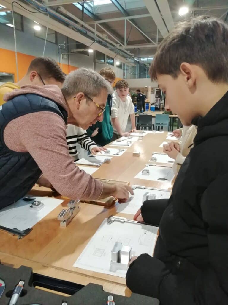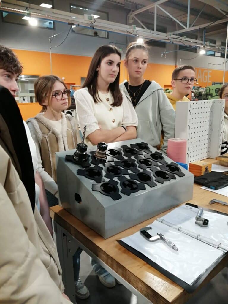 Avant les vacances de Noël, les 4èmes de l’option SDP (Section Découverte Professionnelle) ont été invités à visiter une entreprise à Bouguenais. Divers ateliers et un Cluedo Géant leur ont permis de découvrir les métiers de l’usinage :